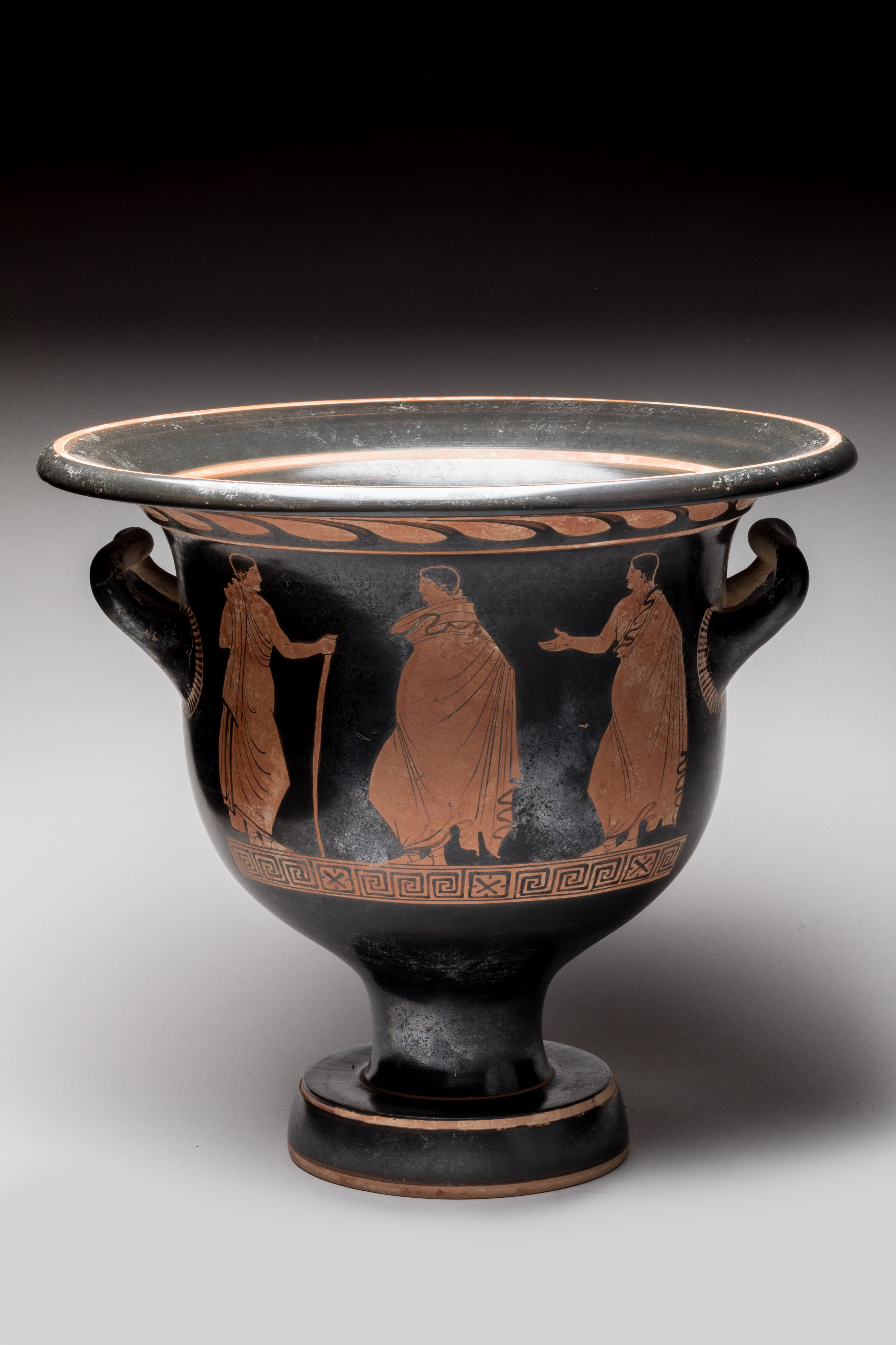 GRAND CRATÈRE en cloche à FIGURES ROUGES.