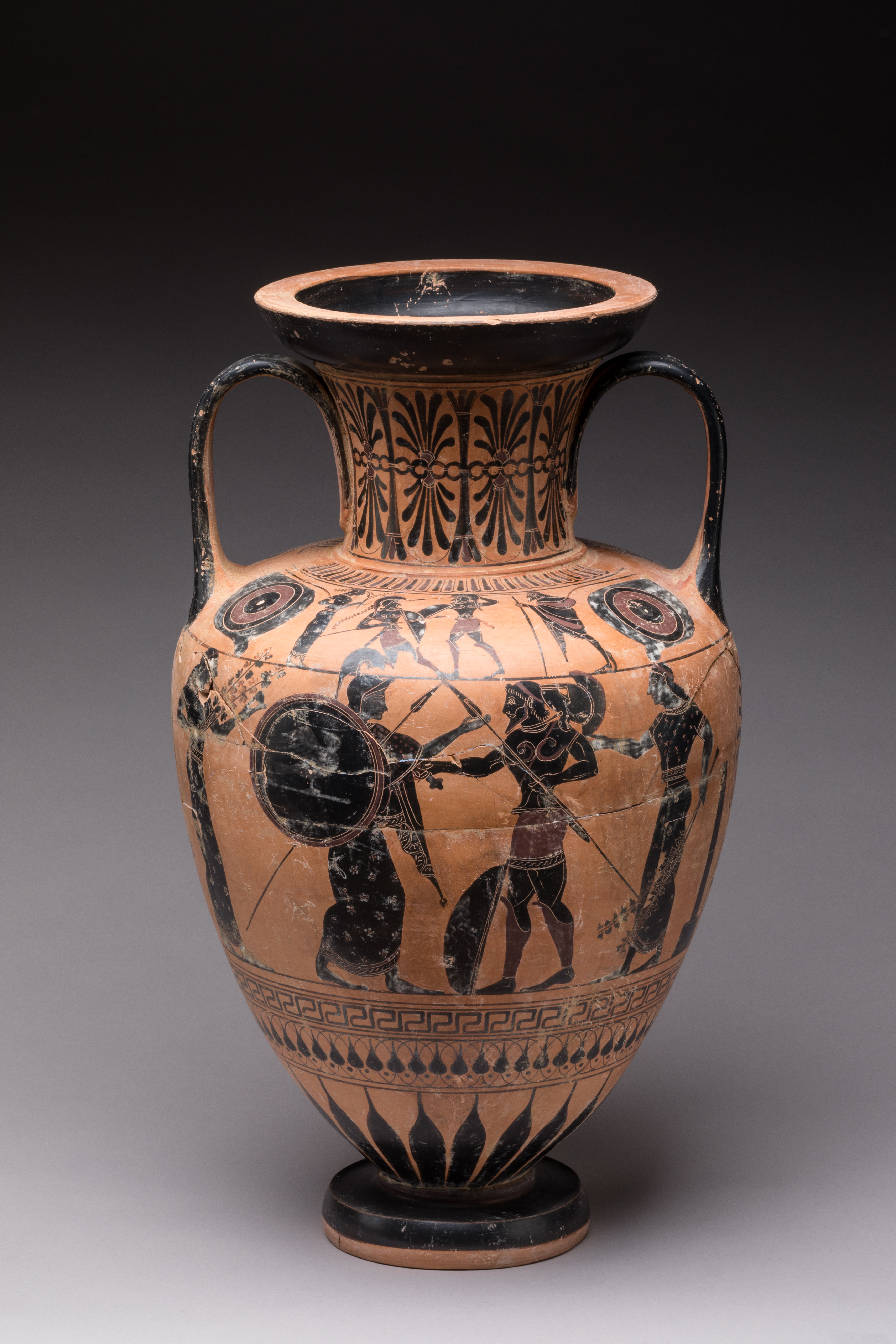 AMPHORE à COL à FIGURES NOIRES, avec ATHENA et DYONISOS