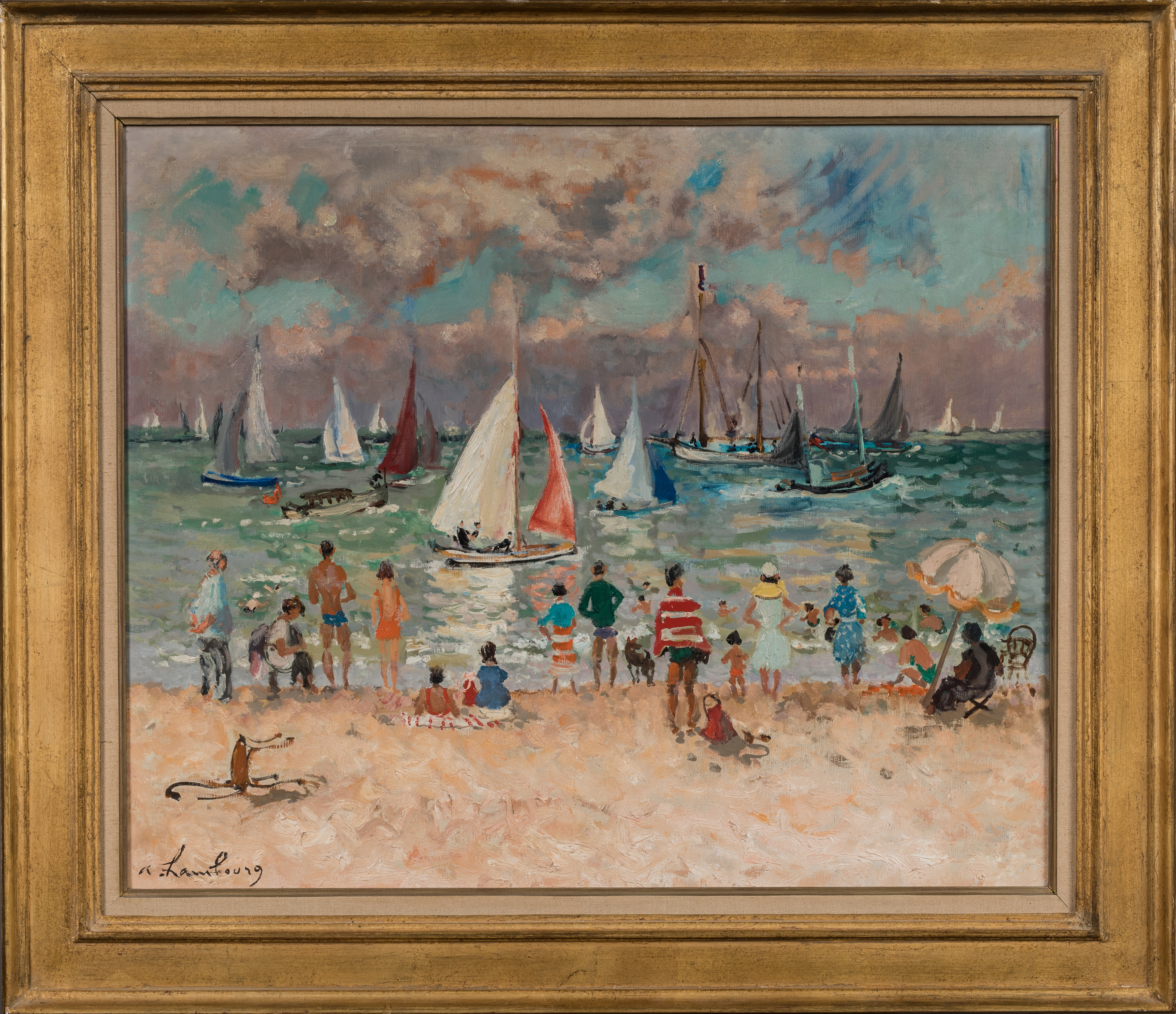 - André HAMBOURG. "Yachts à marée haute", Trouville, 1961. 59 x 73 cm. Est. 10/15.000 €