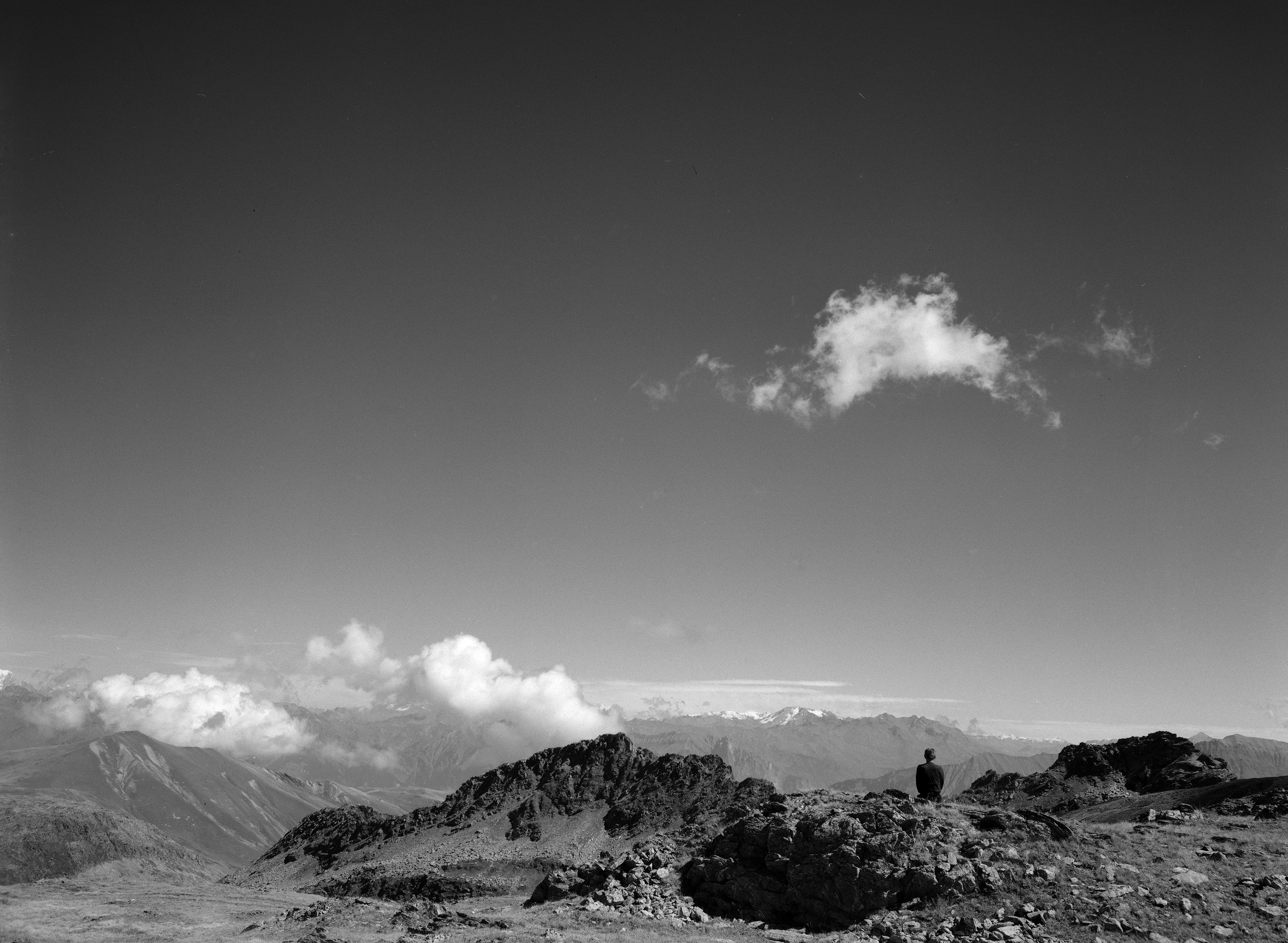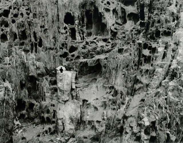 « Sans doute y a-t-il la beauté des images, qui mettent en scène le corps d’un sujet dans la nature, le paysage, la matière ; mais il y a la beauté des mots, sensible d’abord dans cette attention aux titres des œuvres, et dans la dernière partie de l’œuvre, visible à même l’image, dans ces phrases dessinées à la craie sur la roche. Dans ce travail, il y a deux composantes ; celle qui gouverne la prise de vue – ces « marches » dans les Alpes, l’Himalaya, le Mont-Faron, près de Toulon, les rivages du Portugal et bien d’autres lieux – et celle qui accompagne la production des images elle-même, leur révélation leur manufacture. Les deux artistes ont ainsi toujours tenu à faire œuvre complète, de la prise de vue au tirage. Avec en mains, en tête, les écrits d’Ansel Adams, le grand photographe américain du paysage, maître du noir et blanc. Ainsi est-ce une œuvre particulièrement précieuse qui est aujourd’hui mise en vente. »