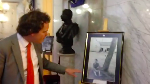Jean-Claude Dey surpris pendant l’expertise de spectaculaires épées de cour