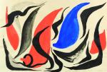 Composition.Gouache sur papier, dédicacée, signée, datée en bas à droite : "A Emile Jubault amicalement Calder 1967".