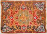 TAPIS ROYAL en laine à fond brun et olive à décor de bouquet central